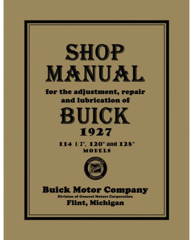 1927 Buick Shop Manual innehåller beskrivningar på motor, transmission, bromsar, bränsle, avgas, styrning, chassi, elektriskt och kraföverföring mm. Antal sidor 114. Skriven av Buick Motor Division. Buick Series 115 1927 Buick Series 120\\u00A01927 Buick Ser