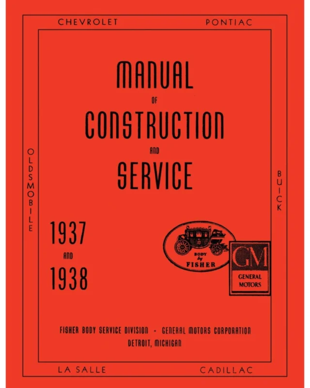 1937-38\\u00A0Fisher Body Manual\\u00A0 beskriver service och reparation av karosserna såsom fönstermekanismer, justering av rutor, innertak, lister, inredning, skärmar stötfångare\\u00A0med mera kupe och kaross relaterade komponenter. Skriven av Fisher Body Division Ant