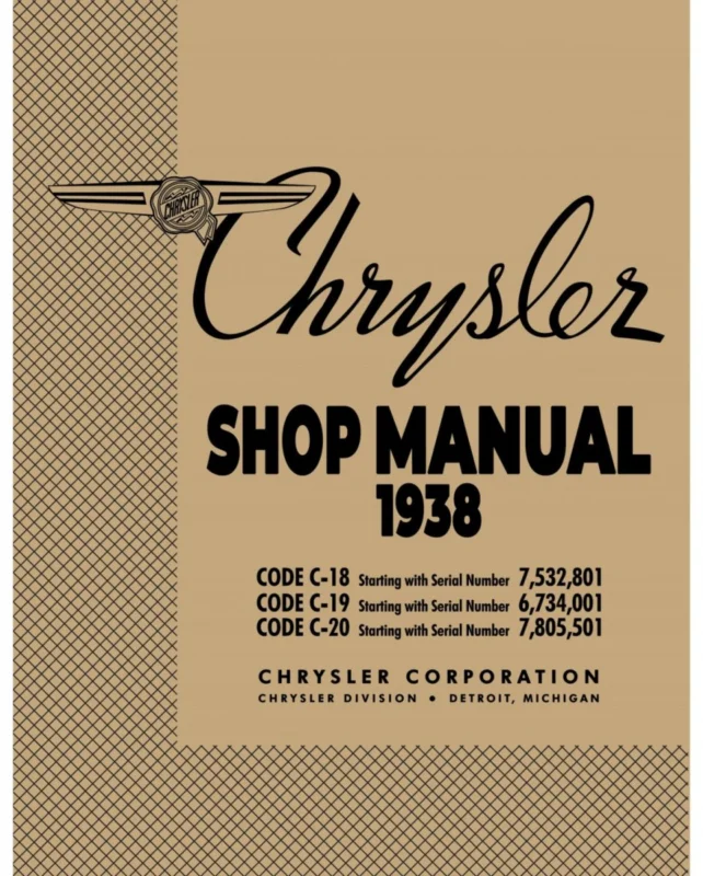 1938\\u00A0Chrysler Shop Manual\\u00A0beskriver\\u00A0bromsar, motor, transmission, chassi framvagn och bakvagn, bränsle avgas, styrning, elektriskt, kylsystem och kraftöverföring\\u00A0med mera. Antal sidor 186 Skriven av Chrysler Corporation Chrysler\\u00A0C19, Imperial, Imperial