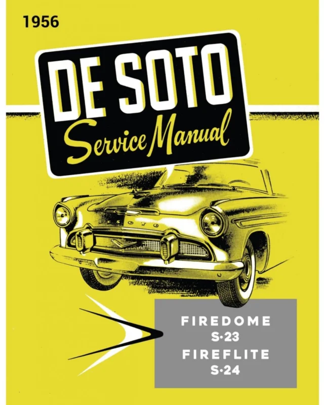 1956 Desoto Service Manual\\u00A0innehåller beskrivningar hur man servar och reparerar framvagn, bromsar, transmission,styrning, kylsystem, kraftöverföring, motor, AC, avgas elsystem med mera. Antal sidor 722 Författare Desoto Division Desoto Firedome 1956 D