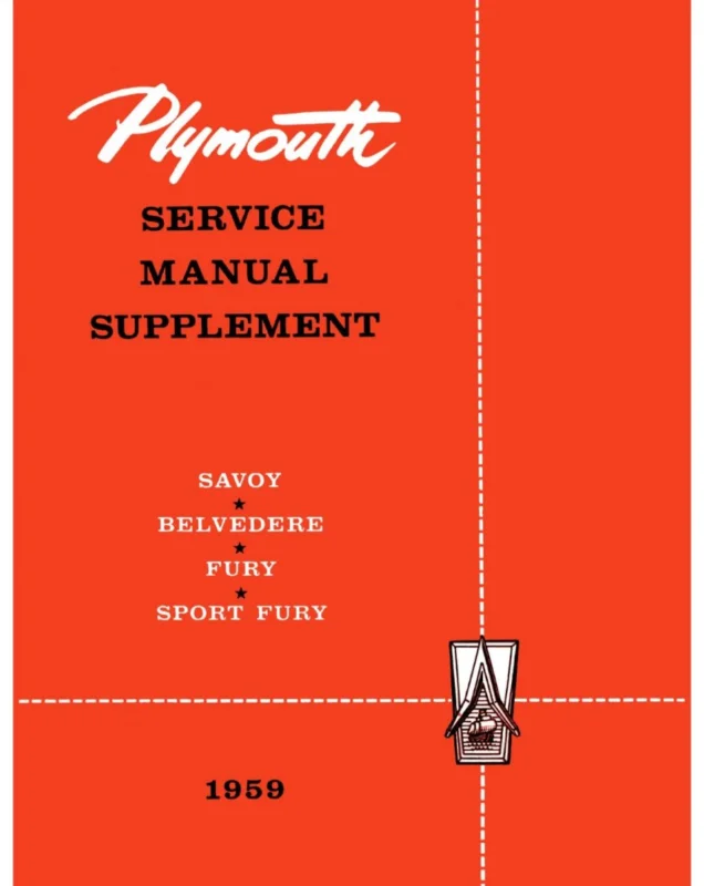 1959 Plymouth Service Manual Supplement, tilläggsmanual till 1958 års manual som tar upp nyheter och ändringar jämförtmed föregående år. Används tillsammans med 1958 års manual Antal sidor 96 Författare Plymouth\\u00A0Division Plymouth\\u00A0Belvedere\\u00A01957-58 Plym