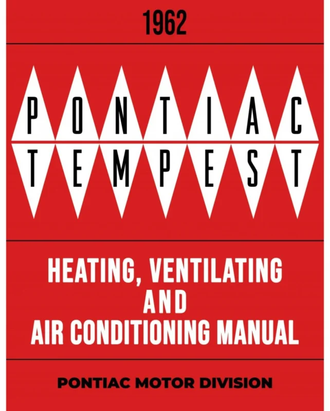 Pontiac Heating Ventilation and AC Manual\\u00A0är en servicemanual som beskriver värme, ventilation och luftkonditionering. Antal sidor 180\\u00A0skriven av Pontiac Motor Division. Pontiac Bonneville 1962 Pontiac Catalina 1962 Pontiac Grand Prix 1962 Pontiac Star