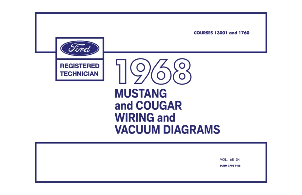 1968 Ford Mustang, Mercury Cougar Wiring and Vacuum Diagrams Manual. Malm Motors servicemanualer för USA-bilar.
