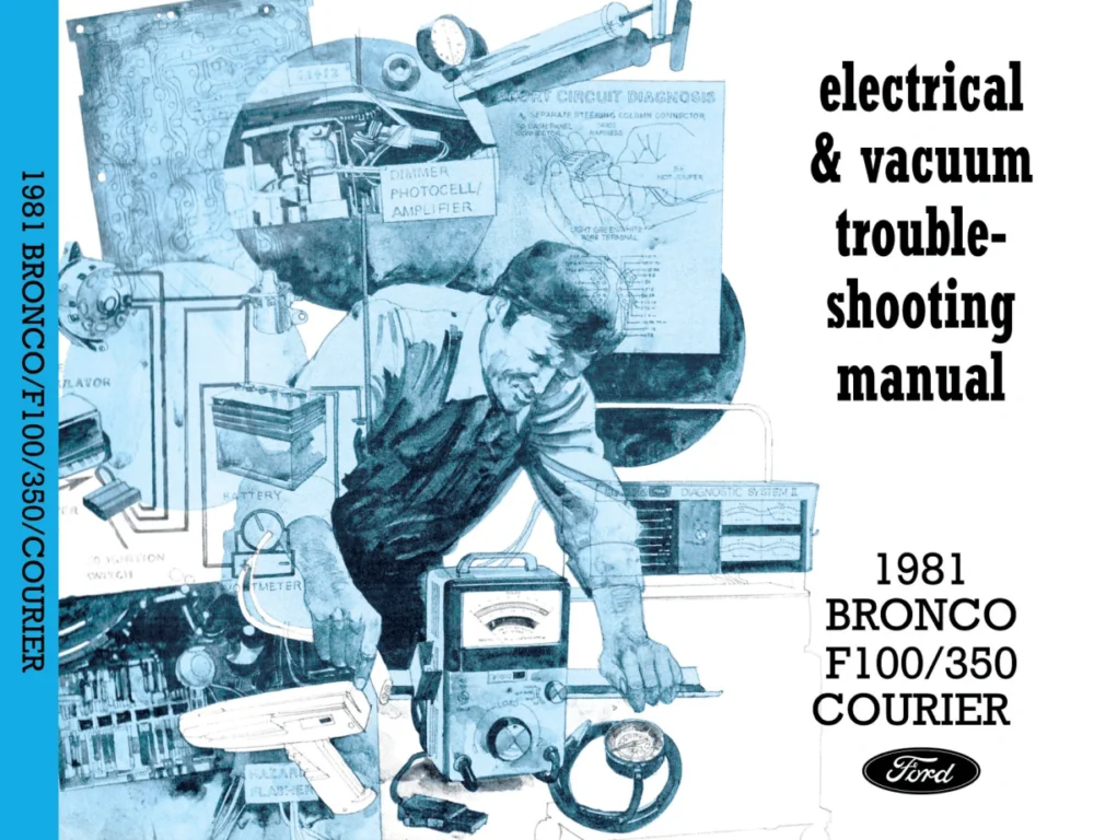 1981 Ford Bronco, Courier, F100-350 Electrical & Vacuum Troubleshooting Manual. Malm Motors servicemanualer för USA-bilar.