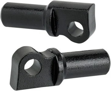 Male Clevis MountsConstructed of investment-cast 4130 chromoly steel for strengthFeature a threaded interface to make adjusting the angle of foot pegs easyConical surface creates a tension fit inside the foot peg when the 5/16-18 Allen cap screw is tightened inside the clevis, which holds the peg in placeThe clevises fasten to the 2-pronged mount with the stock pivot pin assembly, or you can use 3/8-inch bolts and nuts to secure the complete peg assembly to your machineColor/Finish: BlackMaterial: 4130 Chromoly SteelMounting Position: Left| RightProduct Name: ClevisUnits: PairType: Male MountApplication: Driver| PassengerMounting Style: Male Mount