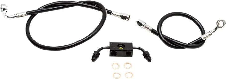 Black Braided Brake Line KitTake \\\\\\”cable calculation\\\\\\” headaches out of swapping handlebarsBrake lines are compliant with all DOT FMVSS-106 requirementsMade in the U.S.A.Product Name: Brake LineFor Braking System: with ABSMaterial: Stainless Steel| VinylMounting Position: FrontType: Ape HangerColor/Finish: BlackUnits: KitDisc: SingleSize: 30,5 cm – 35,5 cm (12\\\\\\” – 14\\\\\\”)